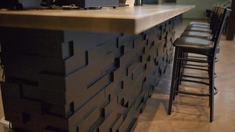 Architectural Wall Panels give restaurants and hospitality spaces instant warmth, structure, and visual depth. Each panel is handcrafted from solid wood and finished using the same commercial-grade systems trusted on our drop-leaf tables. They’re one of the most requested enhancements at TimeWorn, valued for how they elevate ambiance without costly remodels. Whether you prefer clean modern lines or a natural, reclaimed aesthetic, panels are customized to complement your tables, shelves, and overall brand environment.