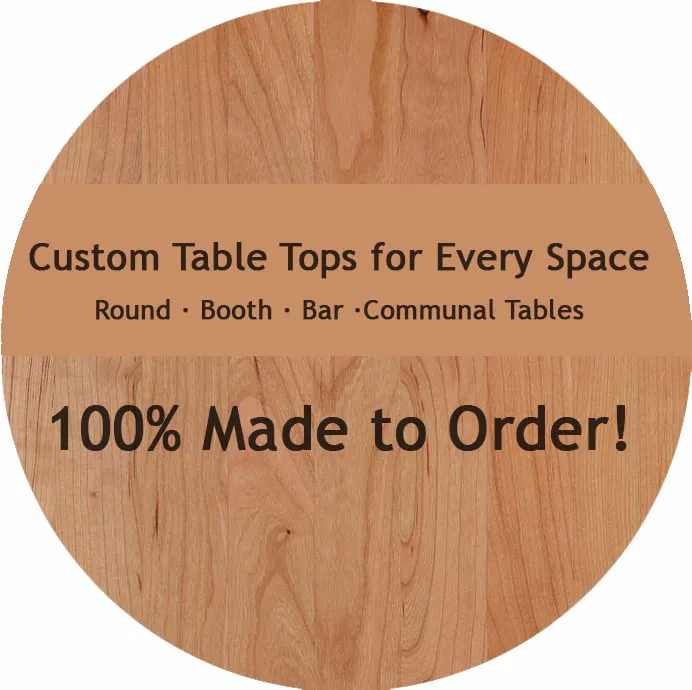 Classic Cherry tabletops in the Classic Line are built for timeless restaurant design. Each stave measures between 1 1/8″ and 1 3/8″ wide, and every top is 1 1/2″ thick. Thickness can be modified for a lighter or bolder presence. Cherry’s natural warmth and its ability to darken with light make it one of the most dynamic species for restaurant interiors with a touch of organic character.