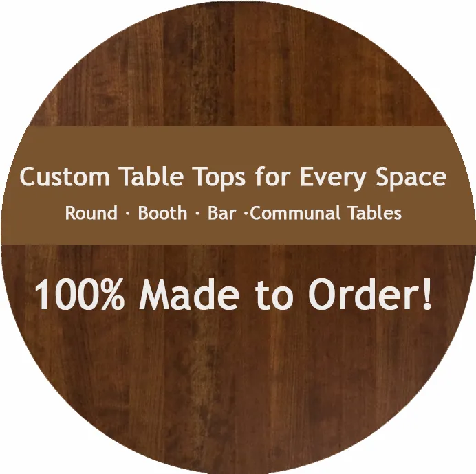 Our Dark Cherry Restaurant Tabletops in a pecan stain blend warm red-brown depth with the classic refinement of cherry wood. The quarter-sawn grain shows subtle figure and natural glow under a smooth matte finish that suits both upscale and casual restaurant interiors. Each tabletop is hand-sanded, sealed on all sides, and built for the practical demands of daily service while keeping its rich tone intact. For a full look at this series, explore our Classic Line collection and compare finishes, textures, and build options for your concept.
