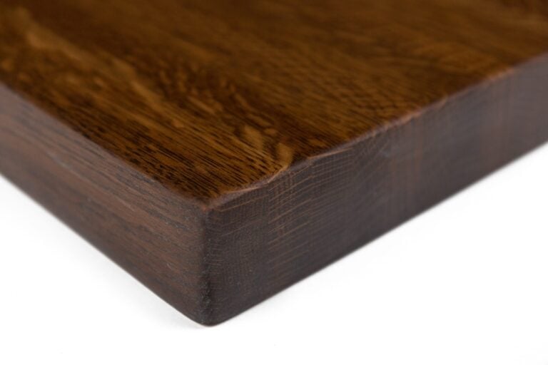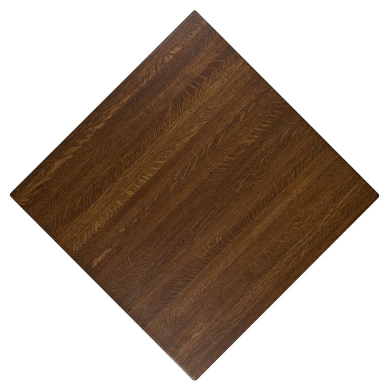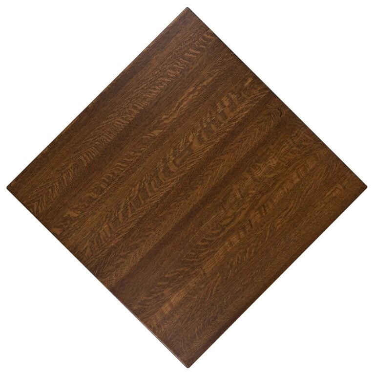 Our pecan-stained butcher block oak restaurant table tops offer a captivating transformation to Original Oak, enhancing its inherent beauty with a rich and darkly colored stain. This meticulous staining process brings out the unique flecking and grain patterns of quarter-sawn oak, creating a visually striking display that captures the essence of classic craftsmanship. The deep and warm tones of the Pecan stain add a touch of elegance and sophistication to the oak, elevating its aesthetic appeal and making it an ideal choice for a variety of dining establishments.