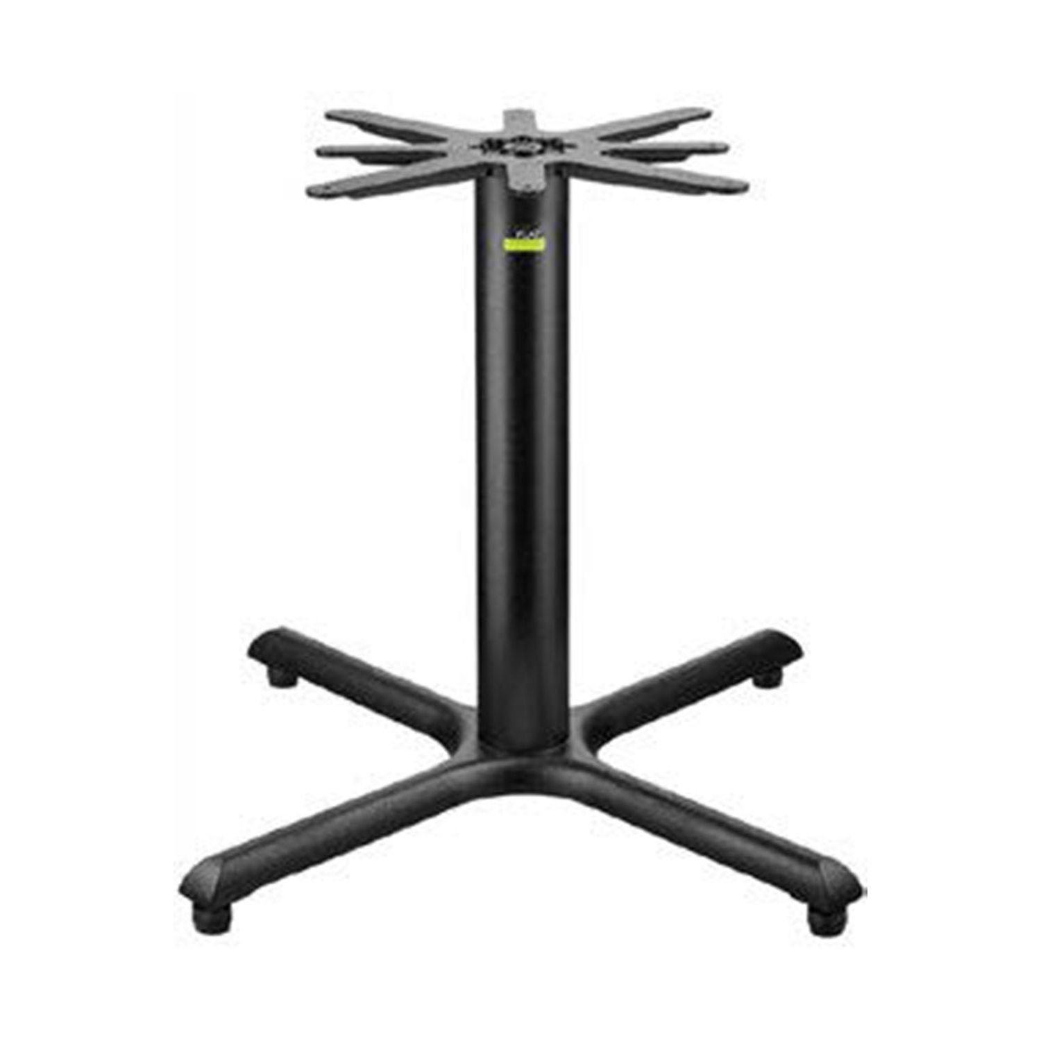 The KX36 EQ Table Base, spanning 36 inches, is the largest in its range, ideal for supporting large table tops. Made of cast iron, it accommodates square tops up to 47 inches and round tops up to 60 inches. This base stabilizes dining setups with FLAT® Equalizers, which ensure a solid foundation on uneven surfaces and are activated by pressing the tabletop. These Equalizers are easily replaceable and come with a two-year warranty.