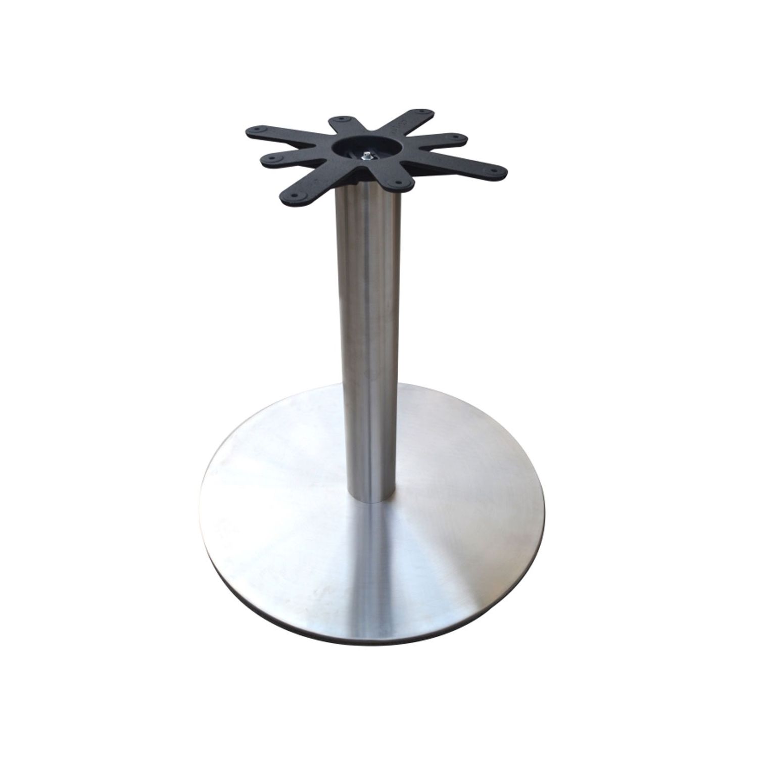 The Round Table Base series presents fashionable domed bases with 5 points of contact. Crafted with a rounded bottom, the base efficiently utilizes more cast iron material within a smaller footprint. This domed structure provides the base with extra weight to support tables of various sizes, a feature uncommon in similar bases. With an overall height of 29″, it boasts a substantial weight of 78 lbs. The base plate measures 28″, the metal column has a diameter of 4″, and it comes equipped with 5 adjustable plastic glides.