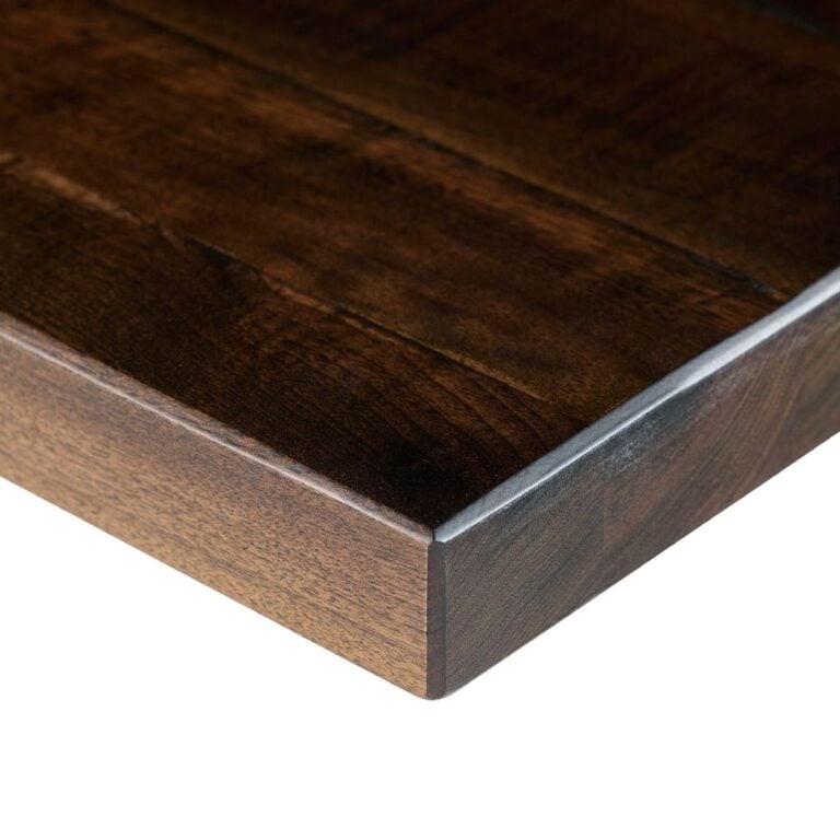 We work from kiln-dried stock, assemble for stability, then seal every face and edge with multiple coats of our low-sheen acrylic polyurethane. The result is a restaurant tabletop that resists common cleaners, heat, and day-to-day abrasion without glare. For edge work, pre-drilling patterns, and QC sign-offs, walk our end-to-end build process to see how we standardize reorders.