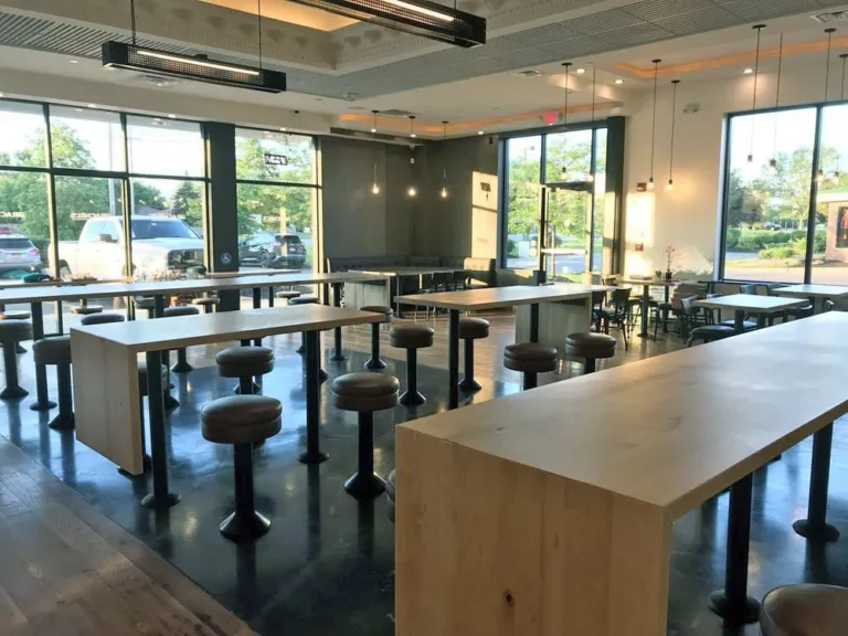 Waterfall restaurant tables carry the grain straight across the top and down integral side panels, creating a single, continuous read without epoxy or gimmicks. The look is quiet and modern, but the construction is practical: dense hardwoods, tight joinery, and edges that hold up to daily service. If you’re placing Waterfall alongside other builds, start by comparing finishes and species in the broader tabletop collection and lock in details before you roll out chain-wide.